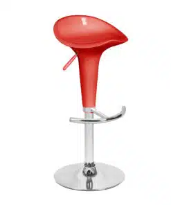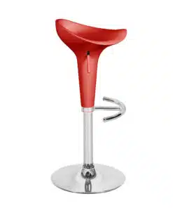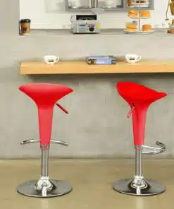 כסאות בר בעיצוב מודרני מתכווננים בצבע אדום עשויים מפלסטיק ABS חזק ועמיד . מנגנון הכסאות בעל בוכנה פנאומטית איכותית להתאמת גובה המושב לפי הצורך.