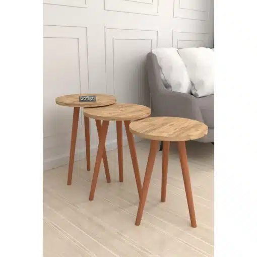 שולחן לסלון בגוון עץ אורון עשויים מעץ מתועש עם חיפוי מלמין יצוק, השולחנות מעוצבים בסגנון קלאסי וישתלבו היטב לצד עיצובים וסגנונות שונים.