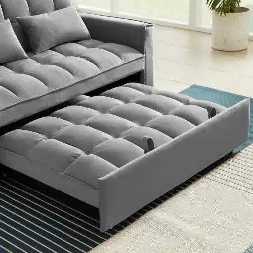 ספה תלת מושבית נפתחת למיטה זוגית מלאה עם עיצוב מודרני וריפוד איכותי
