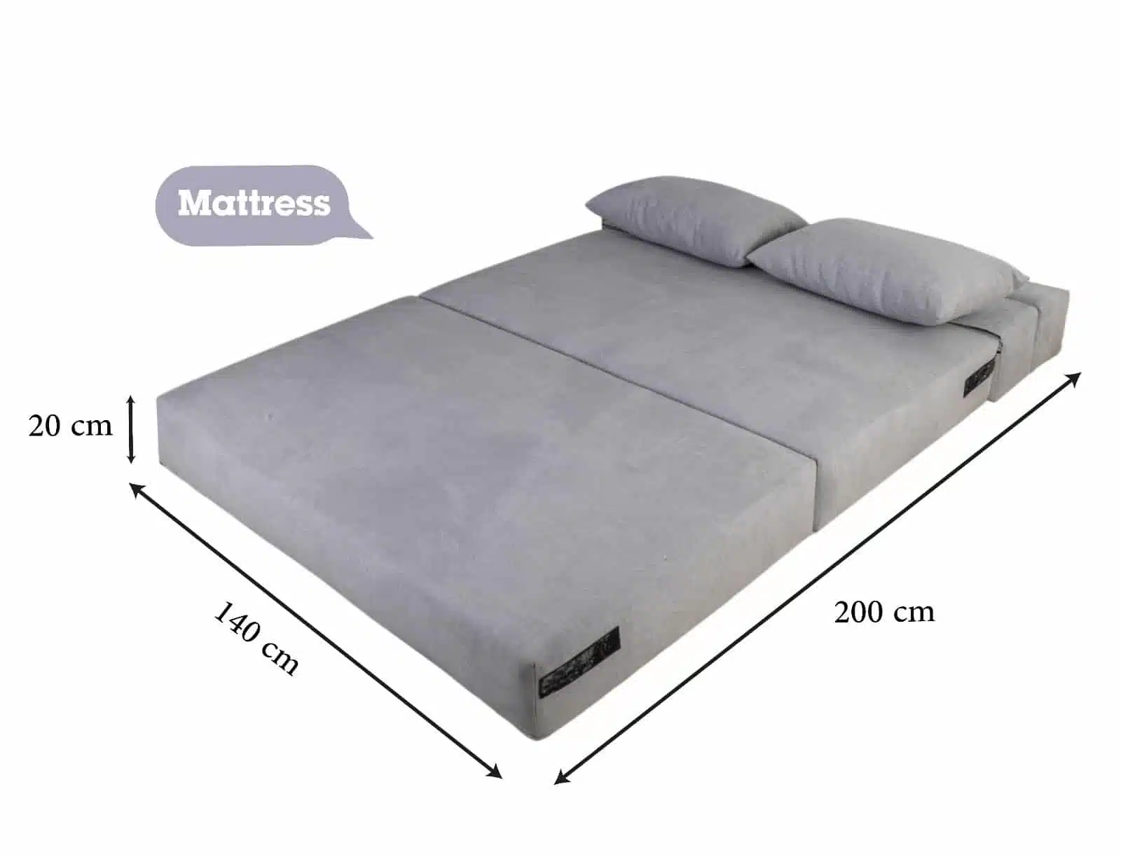 מה עובי המזרן במצב פתוח? עובי המזרן הוא 20 ס"מ, מה שמבטיח ניתוק מהרצפה ונוחות של מיטה סטנדרטית לכל דבר.