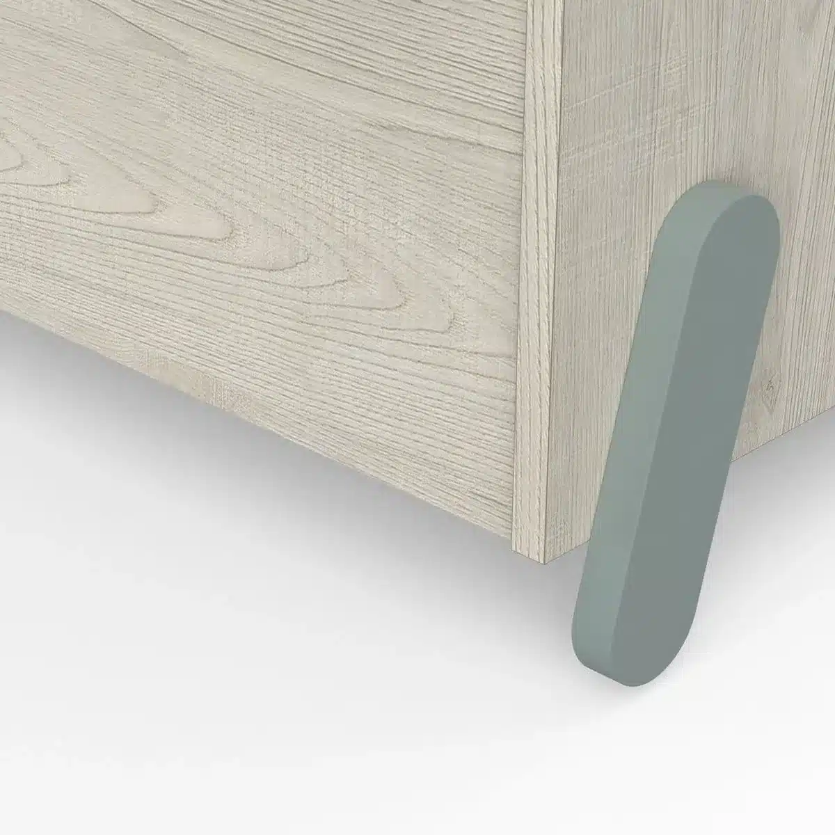 ✓ רגליים עגולות צבועות במראה משחקי וחמוד – הרגליים העגולות/אליפטיות הייחודיות מ-MDF צבוע בגוון ירוק-אפור רך מעניקות לשידה מראה מיוחד, משחקי, חמוד וידידותי שמתאים במיוחד לחדרי ילדים ותינוקות אך גם לחדרים מבוגרים בסגנון רך ונעים. הצורה העגולה רכה ובטוחה יותר מרגליים מרובעות עם פינות חדות, והצבע הירוק-אפור משתלב יפה עם המגירה העליונה ויוצר רצף עיצובי. הרגליים מעניקות גם מרווח קטן מתחת לשידה שמאפשר ניקוי בסיסי