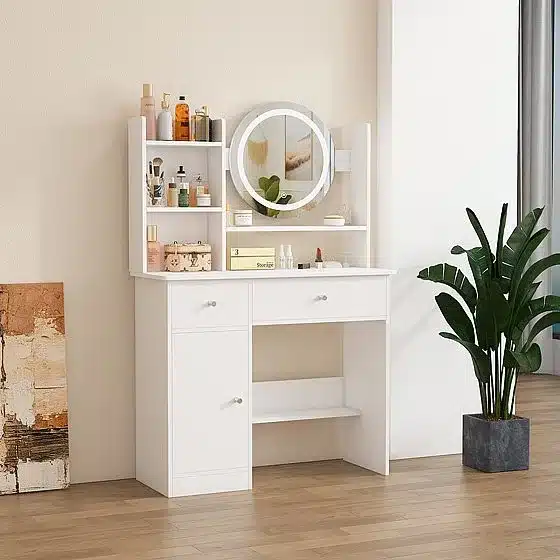 שידת איפור עם מראה ותאורה – פינת יופי מושלמת לבית