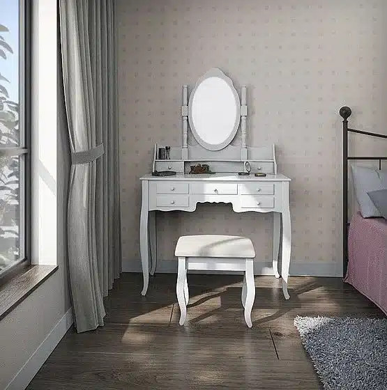שידת איפור עם מראה וכיסא – אלגנטיות וינטג' לחדר השינה