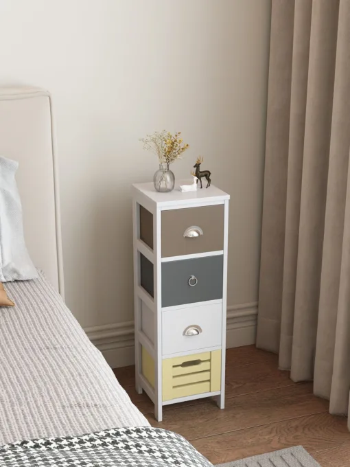 שידת לילה קומפקטית עם 4 מגירות – עיצוב צבעוני וייחודי