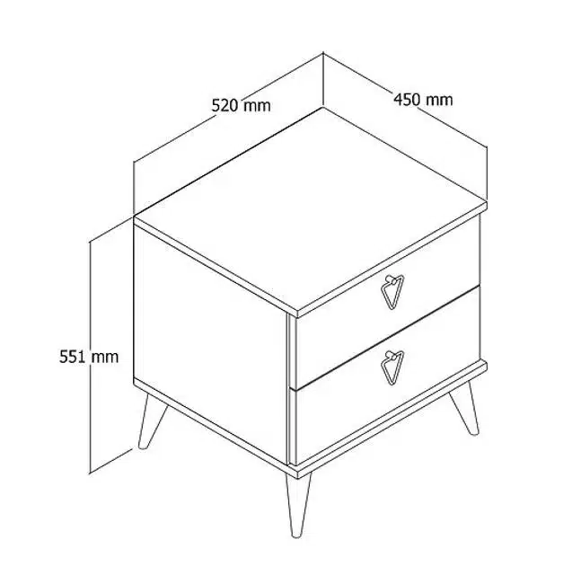 השידה כוללת 2 מגירות אחסון בגדלים שווים המספקות מקום נוח לכל החפצים החיוניים ליד המיטה. המגירות מאפשרות ארגון יעיל של ספרים, מסמכים, ארנק, טלפון, מטענים ופריטים אישיים נוספים. הפתיחה החלקה והמרווח הפנימי הופכים את השימוש היומיומי לנוח ופשוט.
