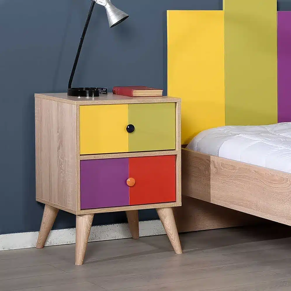 שידת לילה צבעונית 2 מגירות – עיצוב שמח ומרענן לחדר הילדים