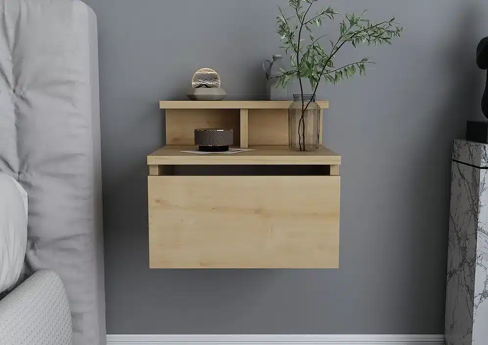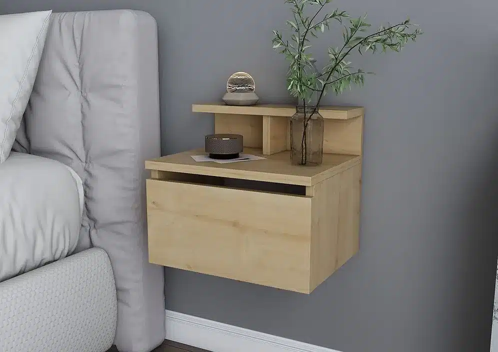 שידת לילה צפה לתליה על הקיר – עיצוב מודרני ואחסון חכם לחדר השינה