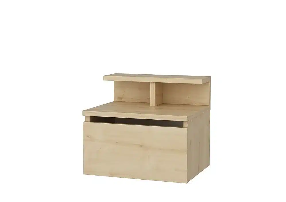 שידת לילה צפה זו זמינה בגוון אלון בהיר המתאים לכל סגנון עיצוב מודרני: