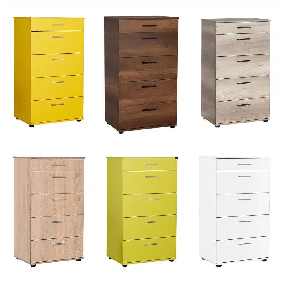 שידת המגירות 5 קומות זמינה ב-6 גוונים מגוונים המתאימים לכל סגנון עיצוב מודרני: