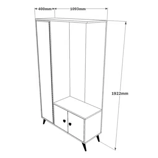 ארון תלייה ואחסון מושלם לחדר השינה או לכניסה לבית , מגיע עם מראה תואמת ומתקן עם ווים לתליית מעילים ותיקים. הארון עשוי מעץ מתועש עם חיפוי מלמין יצוק.