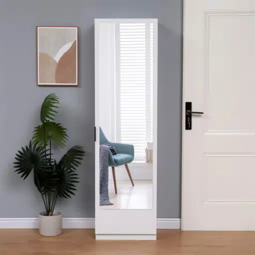 ארון נעליים לבן עם מראה דלת אחת
