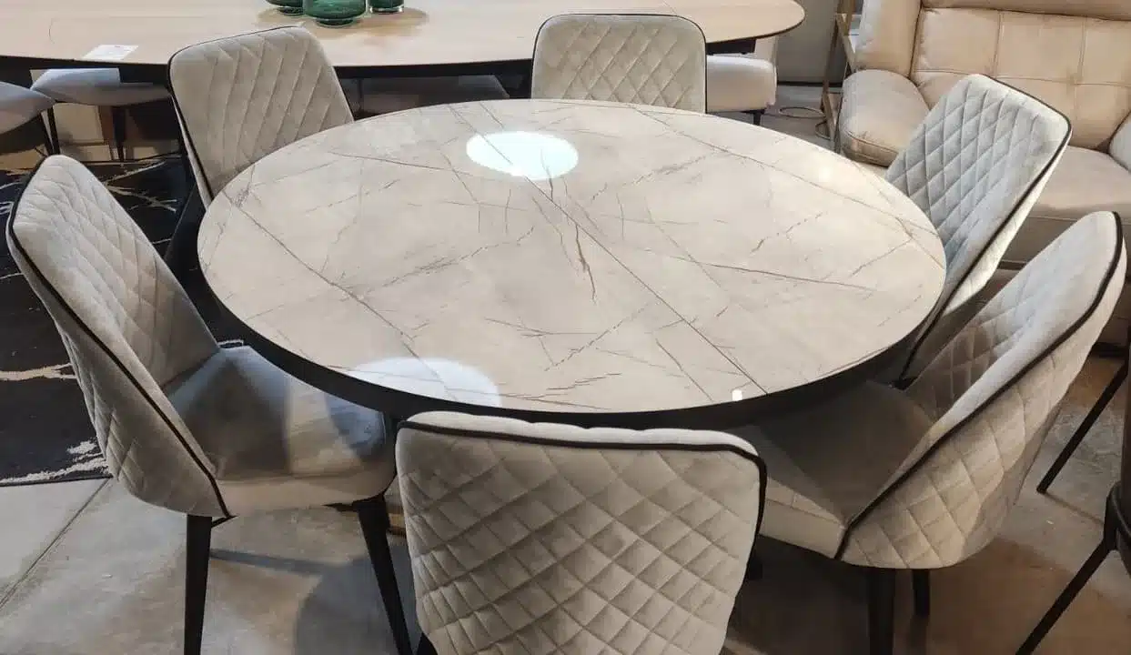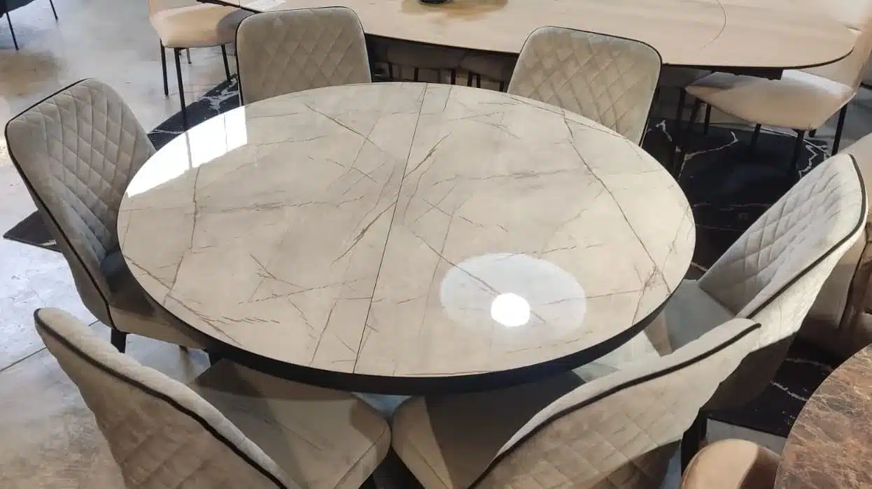 שולחן עגול נפתח קוטר 130 נפתח ל-210 ס"מ ל-10 סועדים – עיצוב מודרני ופונקציונליות מושלמת