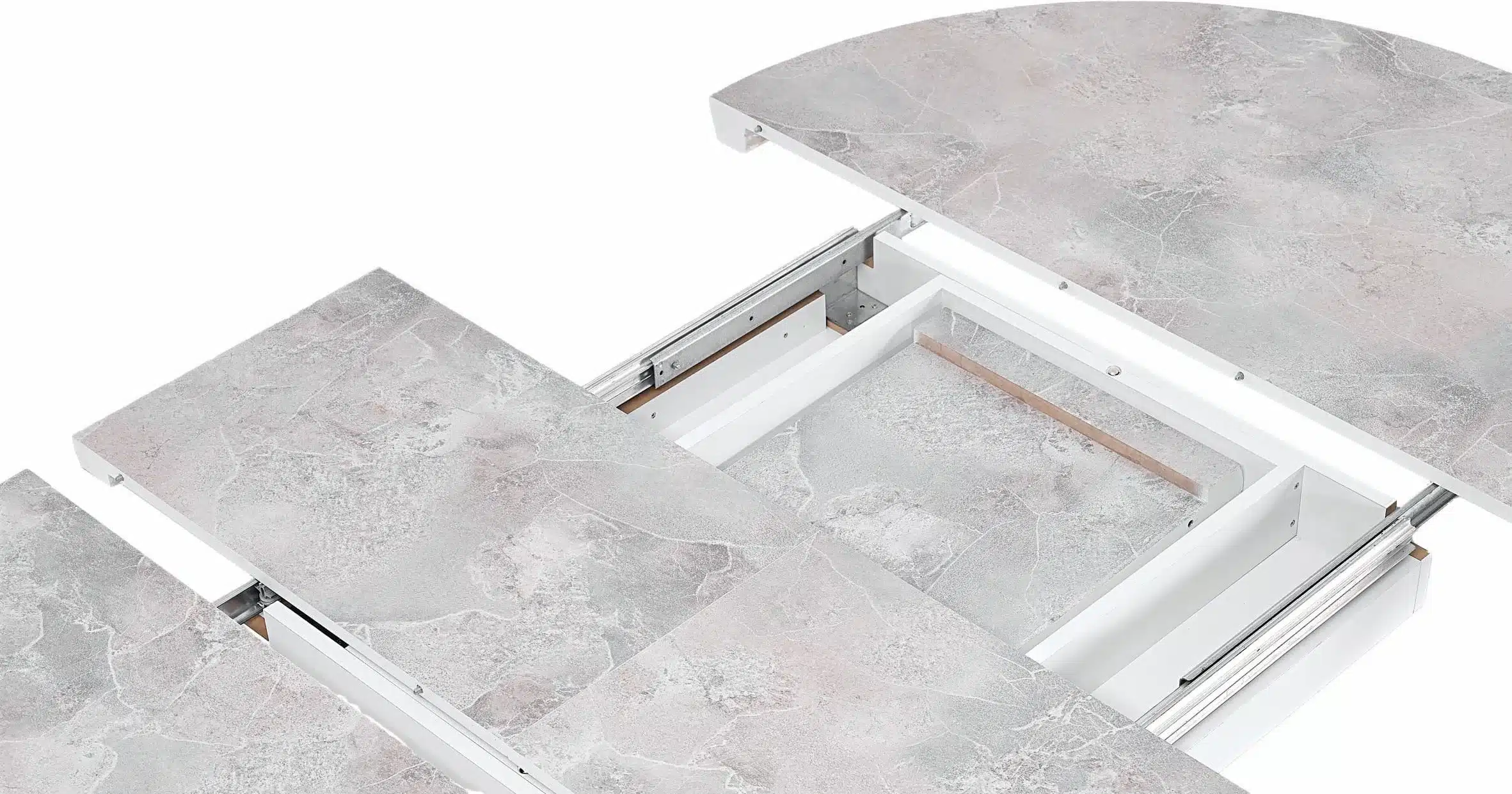 שולחן אוכל עגול נפתח MDF זמין בגוון אפור מתוחכם המתאים לכל סגנון עיצוב מודרני: