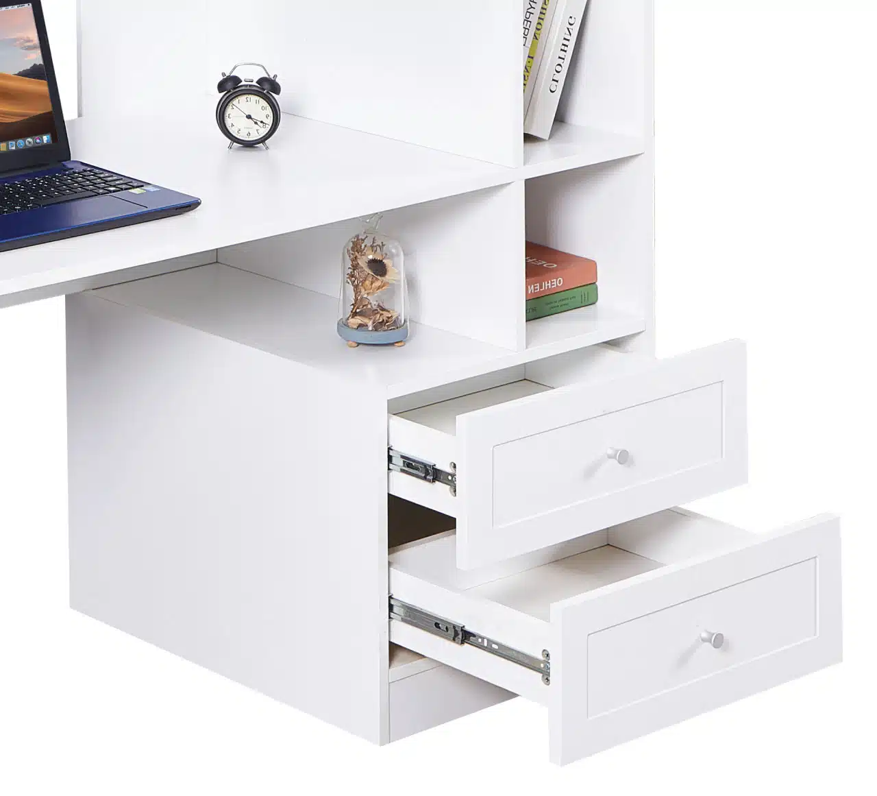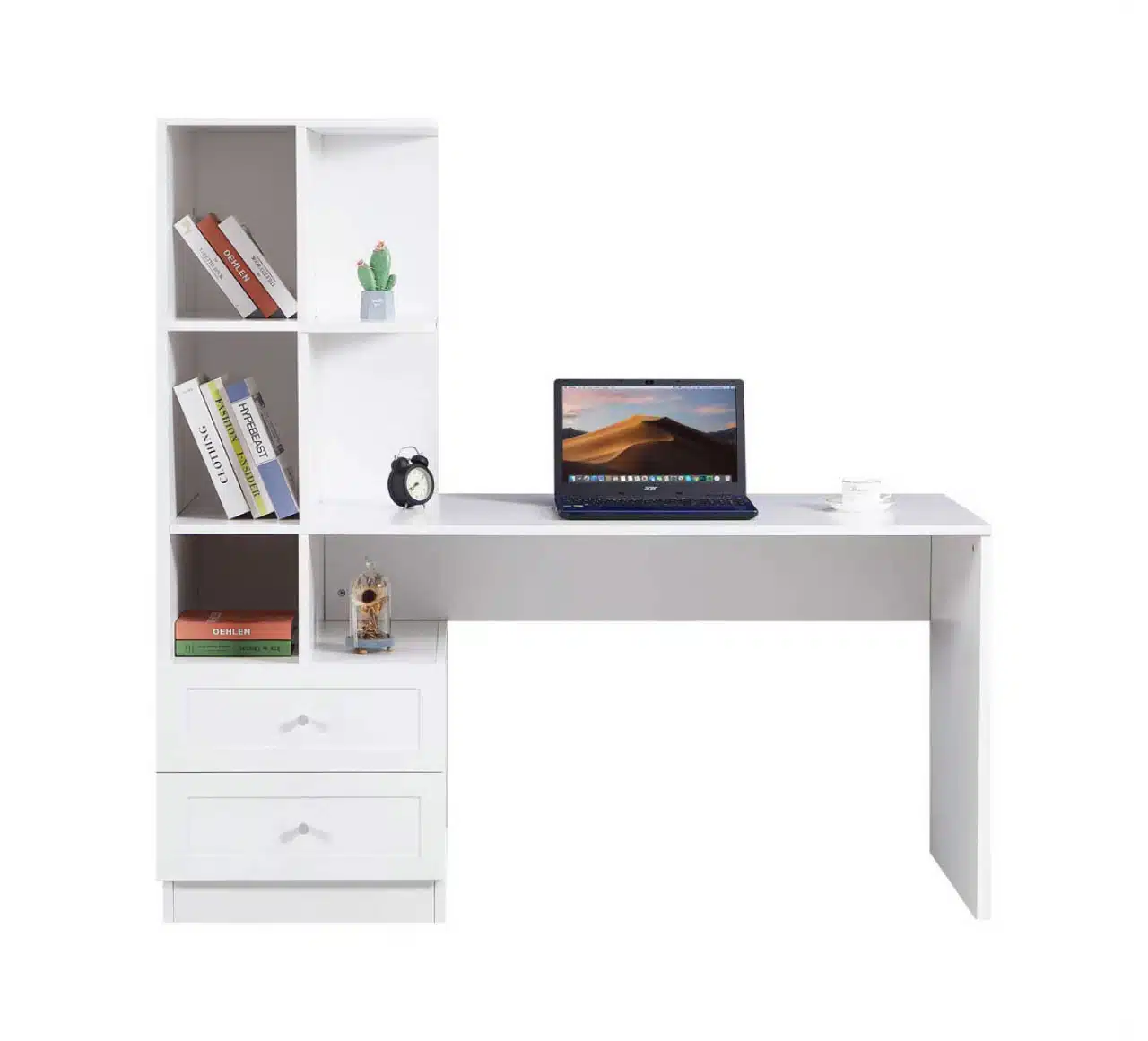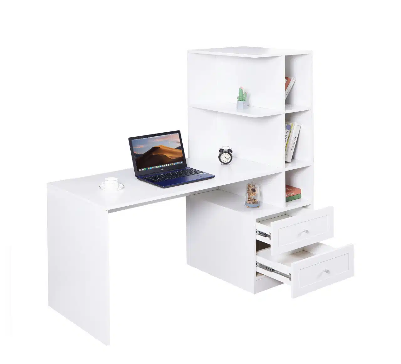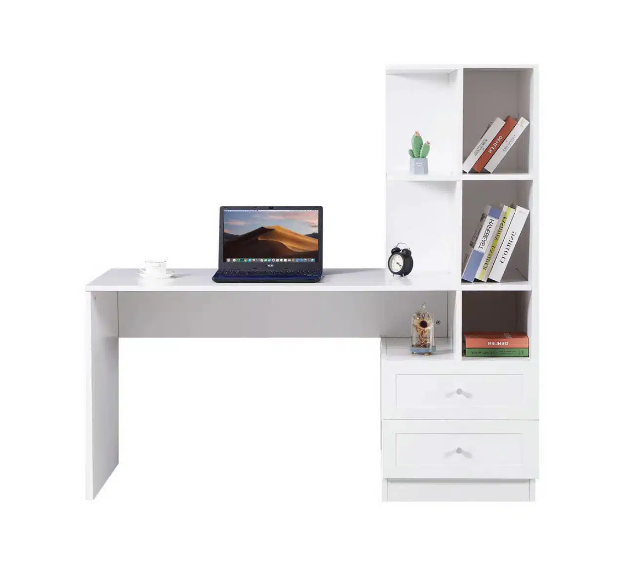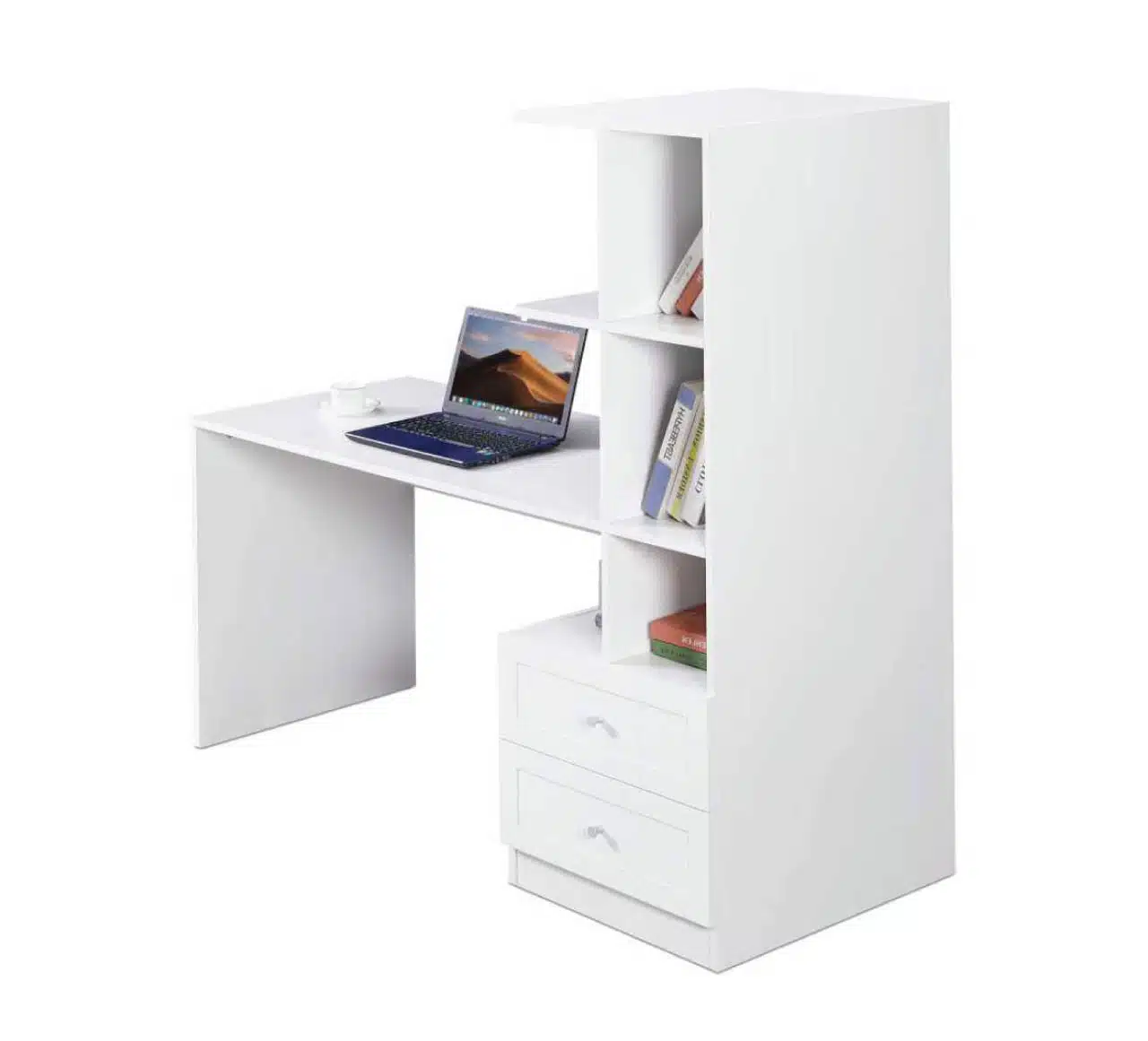 שולחן כתיבה עם ספרייה זמין בגוון לבן קלאסי: