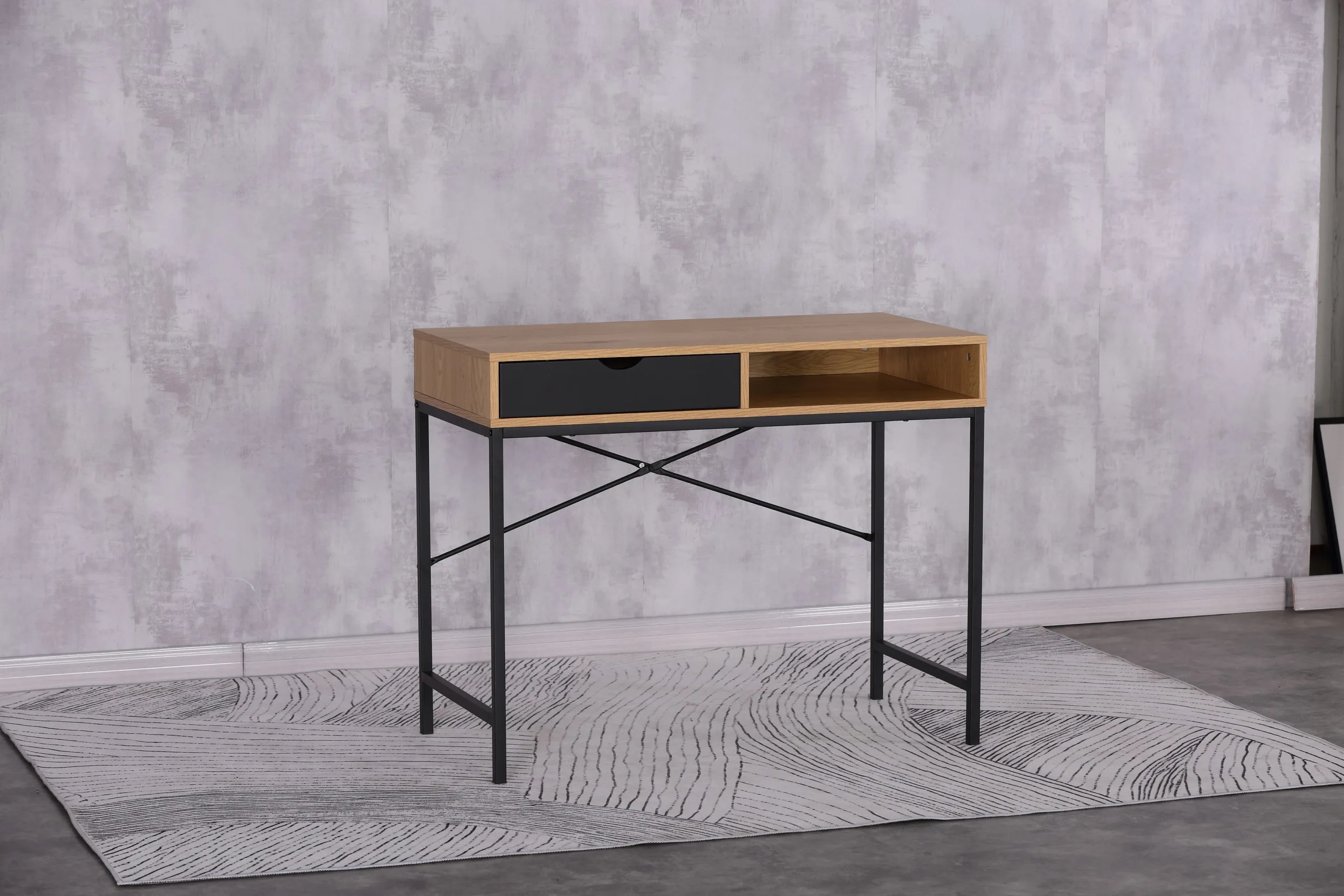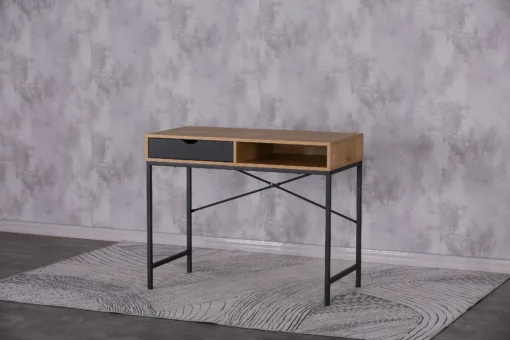 המבנה הרב-תכליתי כולל מגירה מרווחת לאחסון סגור ותא אחסון פתוח לגישה מהירה, מה שהופך את השולחן לפתרון עבודה מקיף ומסודר. השולחן מתאים באופן מושלם לדירות קטנות, חדרי עבודה ביתיים או כל חלל שזקוק לפתרון עבודה יעיל וחסכוני במקום.