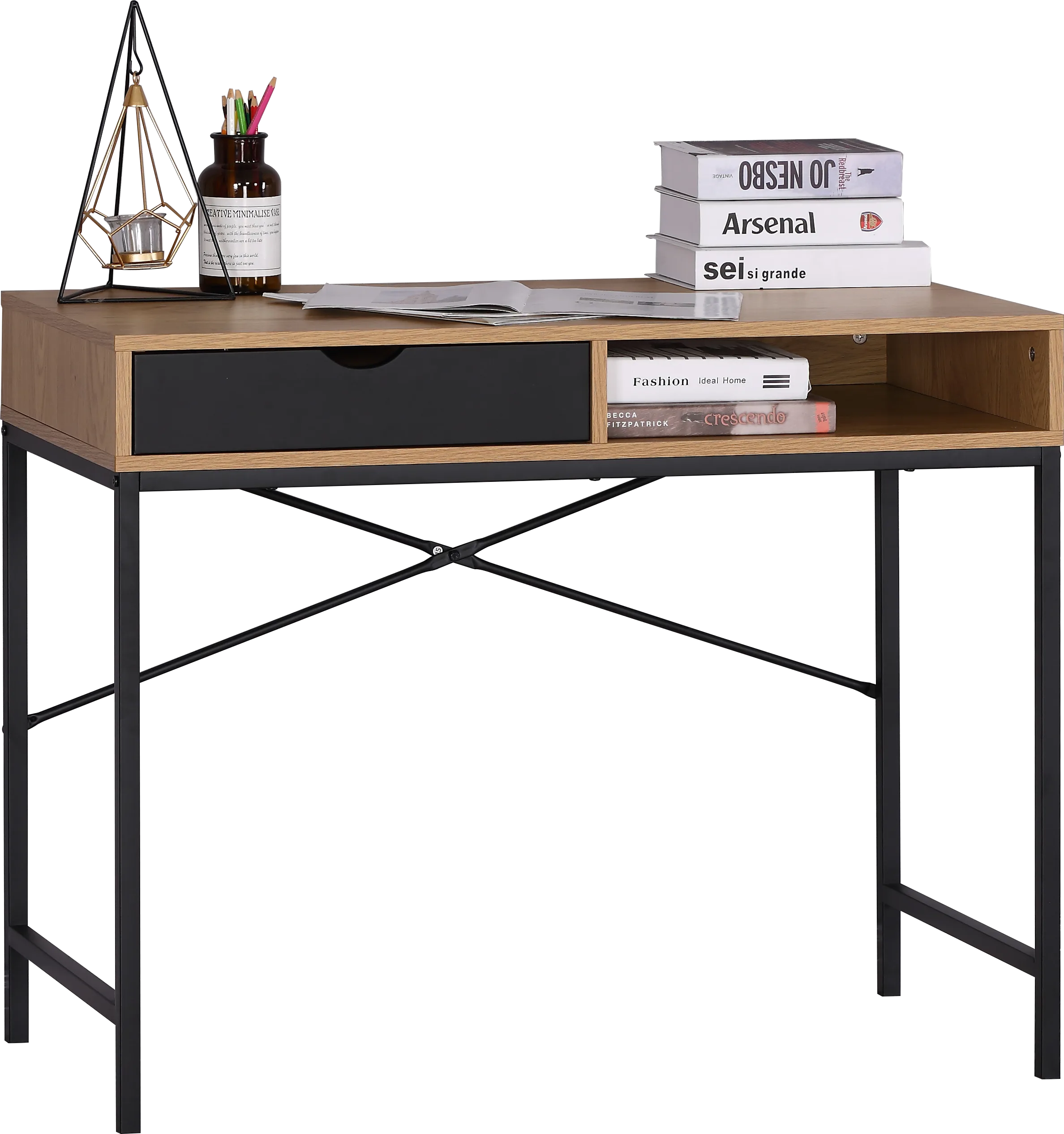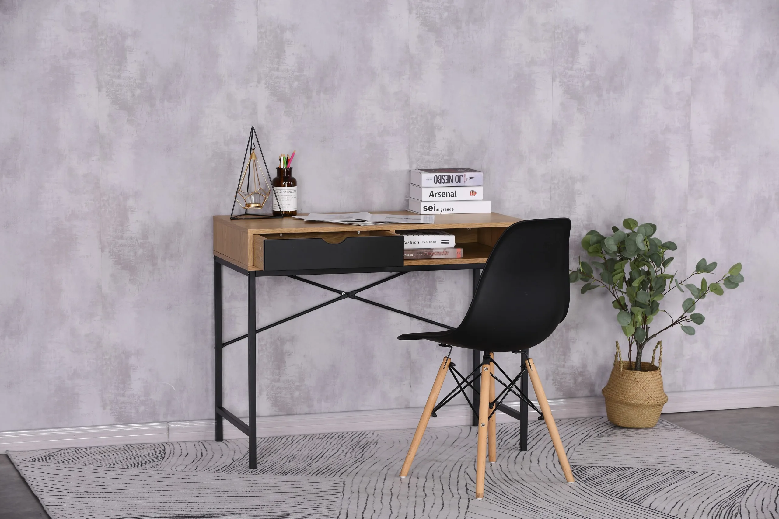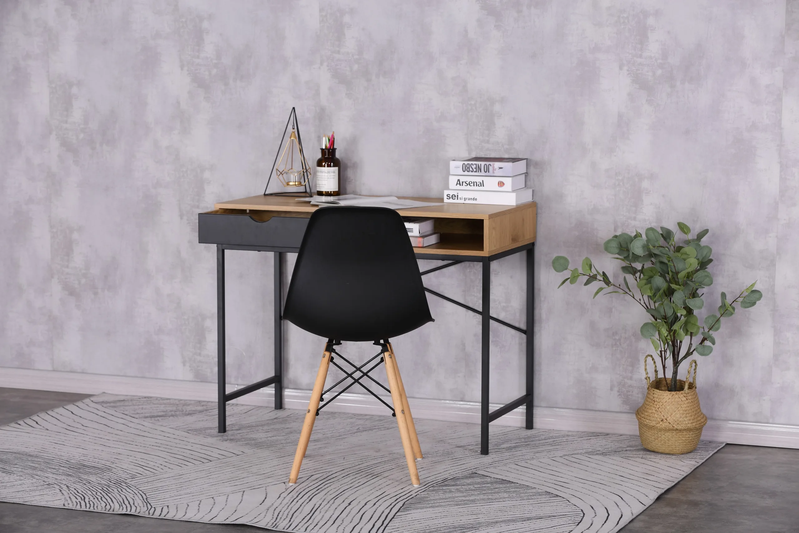 שולחן העבודה המעוצב הוא הפתרון המושלם לכל מי שמחפש שילוב של עיצוב קלאסי, פונקציונליות מעשית ואחסון חכם לעבודה יעילה מהבית או מהמשרד. עיצוב נוח זה מתאים באופן אידיאלי לחדרי עבודה, חדרי שינה, דירות קטנות, סטודנטים ועובדים מהבית, ומספק פתרון עבודה מסודר ונוח לכל בית. בזכות המגירה המרווחת ותא האחסון הפתוח, השולחן מאפשר ארגון אופטימלי של מסמכים, ציוד משרדי ופריטים אישיים, ויוצר אווירת עבודה מסודרת ויעילה.