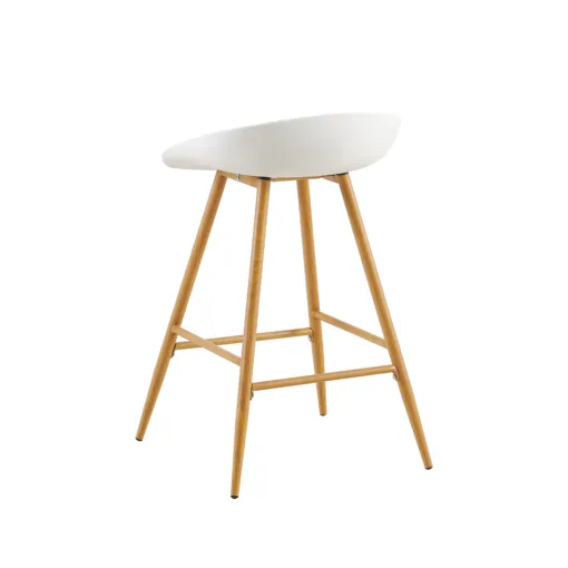 דלפק בר מודרני לבן עם רגלי מתכת דמוי עץ לחיסכון מקסימלי במקום