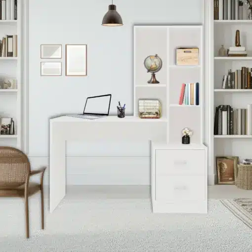 שולחן כתיבה מודרני עם 2 מגירות וספריה מובנית – פתרון עבודה מושלם