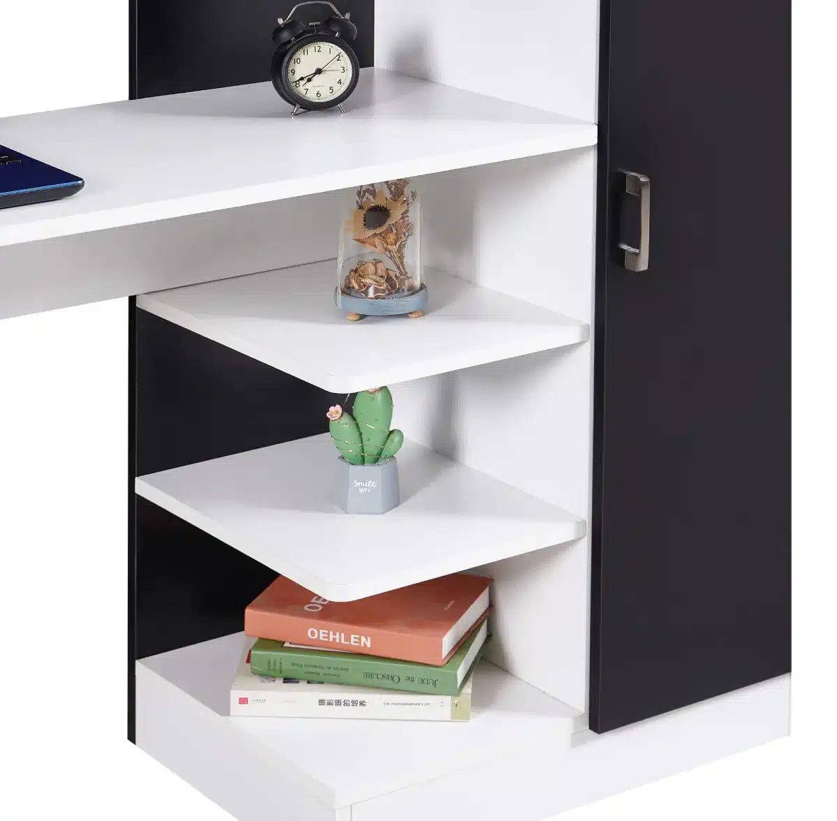 - 4 מדפים פתוחים – לגישה מהירה לספרים, מחברות ואביזרים שימושיים