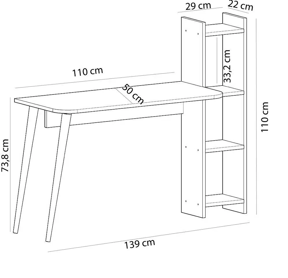 מידות השולחן: 110x50x73.8 ס"מ | מידות הספרייה: 29x22x110 ס"מ