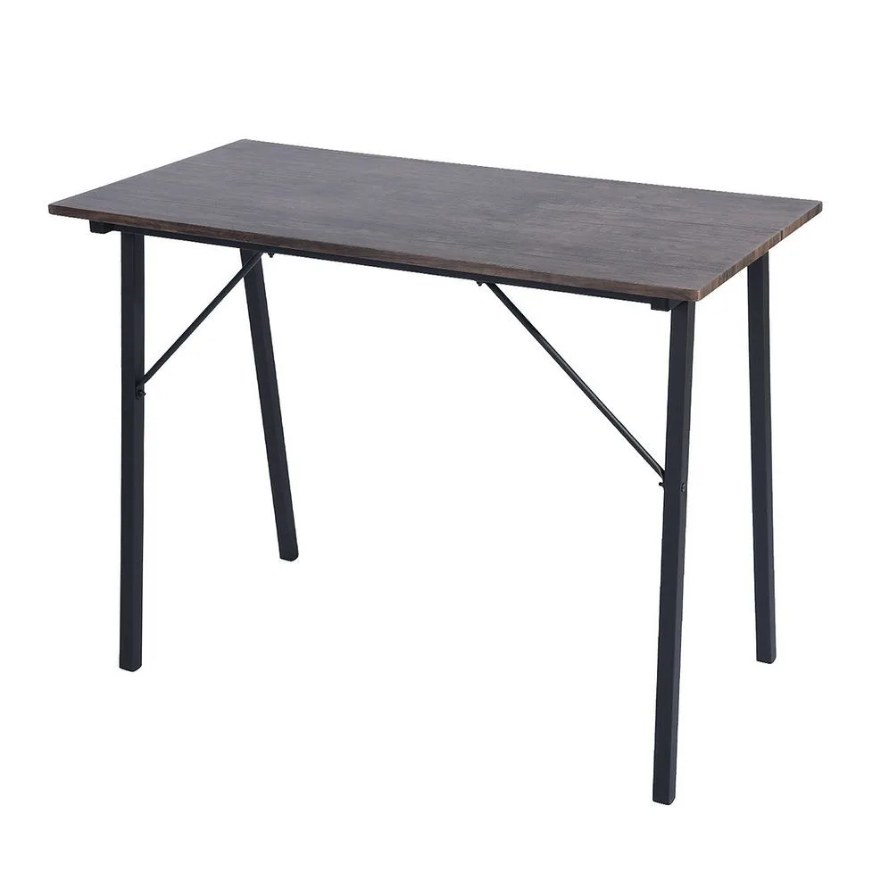 עיצוב איכותי: משטח עץ מעובד בציפוי פורניר יוקרתי בגוון אפור-חום טבעי, משולב עם רגלי מתכת מעוצבות בצבע שחור.