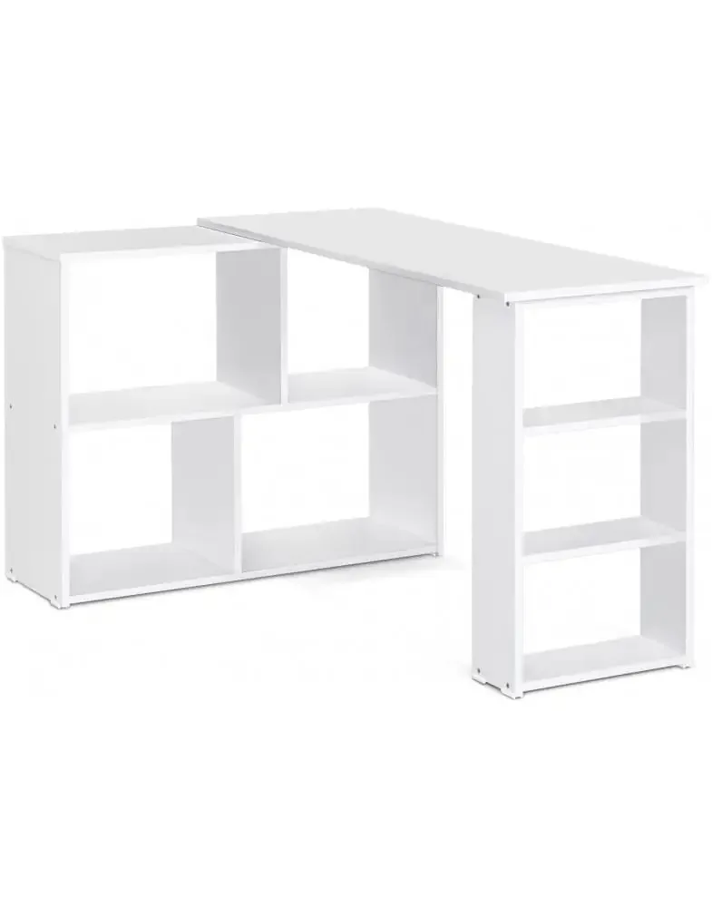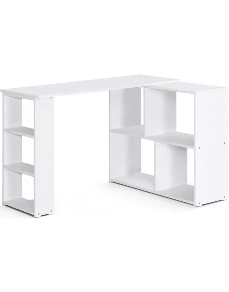 עיצוב פונקציונלי: משטח עבודה מרווח בגימור לבן נקי, המתאים למחשבים ניידים, מסמכים וציוד משרדי. הכוורת המובנית מאפשרת גישה מהירה לספרים וקלסרים.