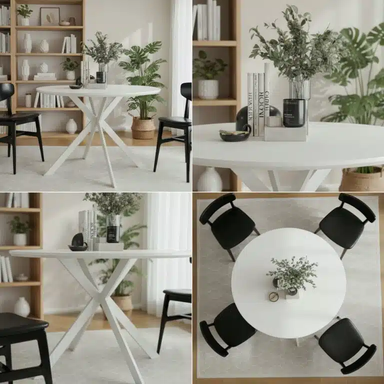 שולחן אוכל עגול עם רגלי מתכת – עיצוב מודרני ויוקרתי