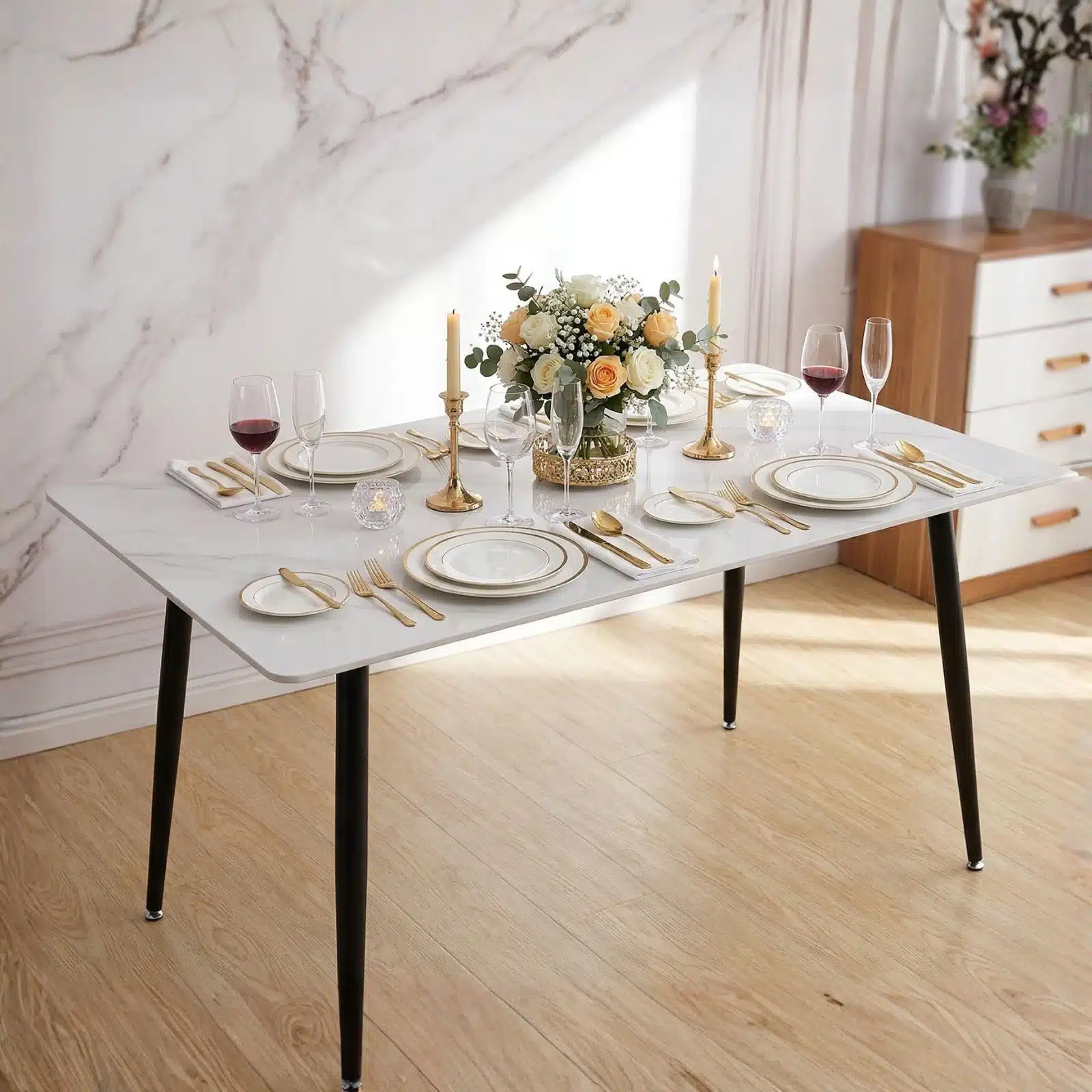 שולחן אוכל קרמיקה דמוי שיש לבן זמין בגוון אחד קלאסי המתאים לכל סגנון עיצוב מודרני: