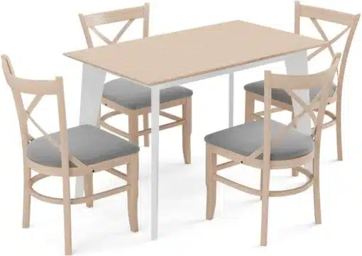 - לבן וגוון עץ– שילוב קלאסי של רגליים לבנות נקיות עם משטח אלון חם שמוסיף נגיעה של טבעיות ואלגנטיות נצחית