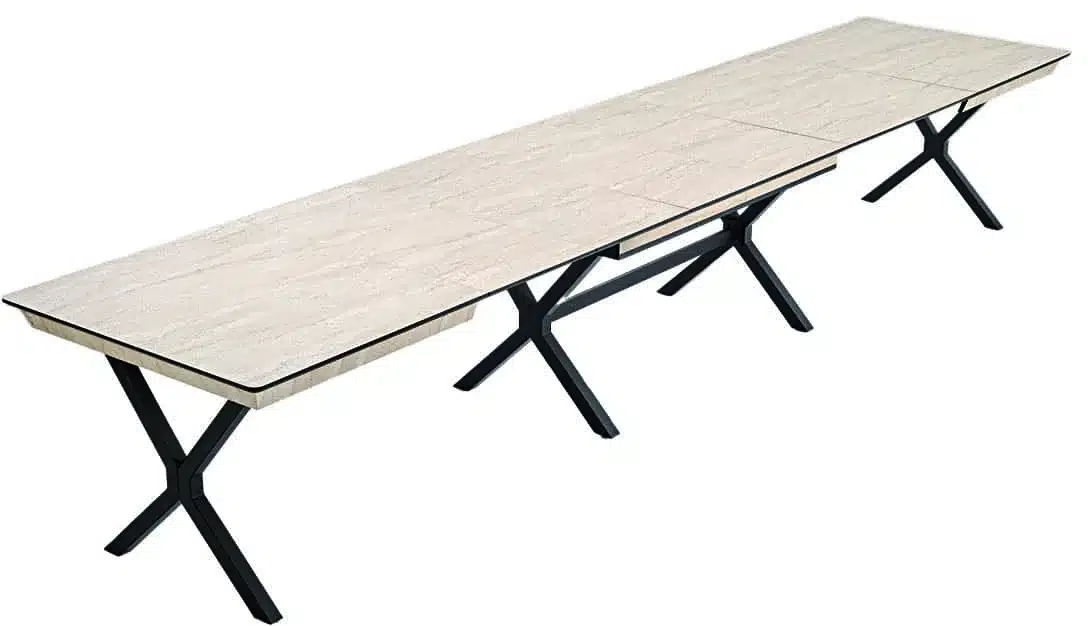 בהחלט! המנגנון הגרמני והרגליים המחוזקות מבטיחים יציבות מקסימלית בכל מצב, כולל פתיחה מלאה ל-470 ס"מ עם עמידה בנוחה של 22 סועדים.
