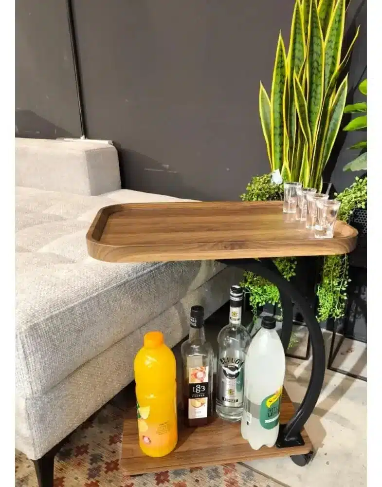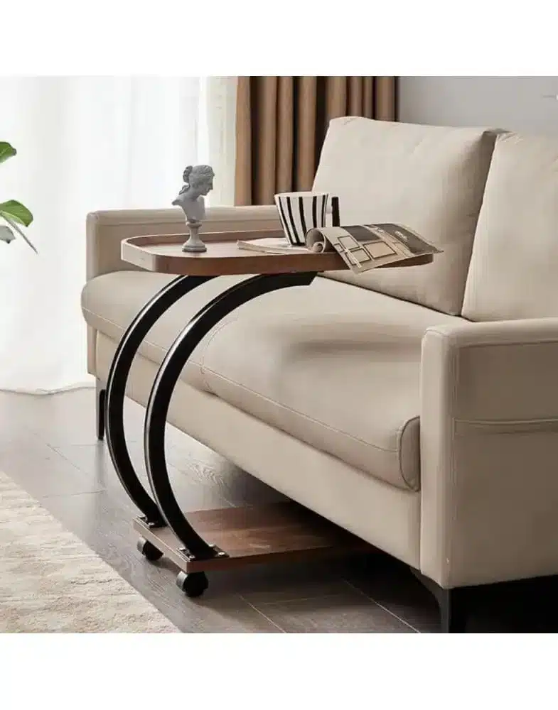 שולחן קפה נייד עם מגש כפול בעיצוב קשתי מודרני