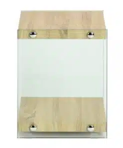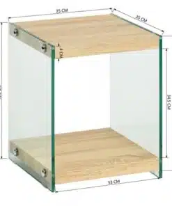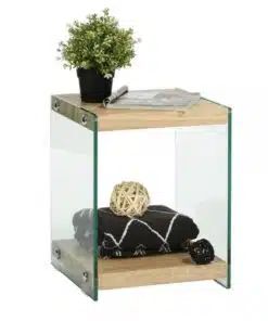 שולחן צד לסלון עשוי מזכוכית ועץ בעיצוב מודרני וקווים נקיים . השולחן עשוי מעץ מתועש עם חיפוי מלמין איכותי עמיד וקל לניקוי משולב עם זכוכית איכותי.