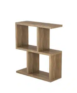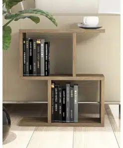 שולחן צד מעוצב לסלון עם שני תאי אחסון . עשויה משבבית דחוסה עם חיפוי מלמין בגוון עץ אגוז