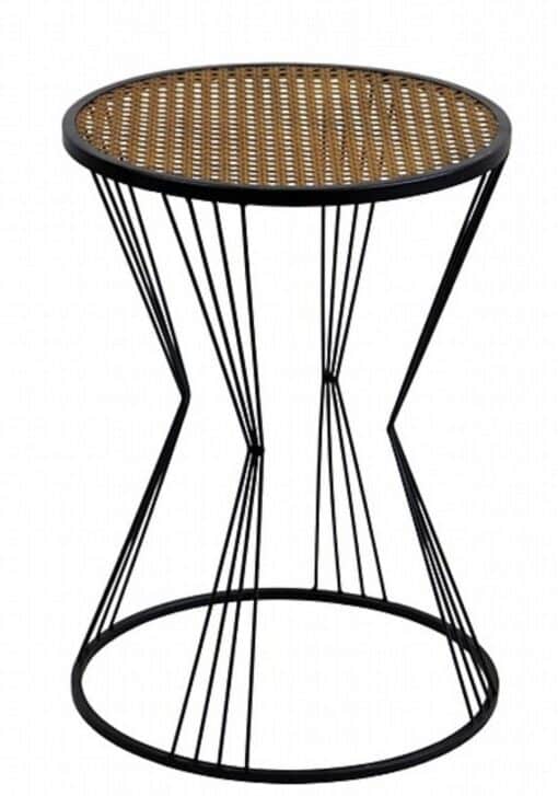 שולחן צד עגול לסלון מראטן ומתכת – עיצוב מיוחד במחיר מיוחד