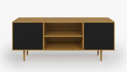 מזנון לסלון רוחב 120 ס"מ בגוון עץ אלון משולב עם שחור עשוי מעץ מתועש עם חיפוי מלמין יצוק.