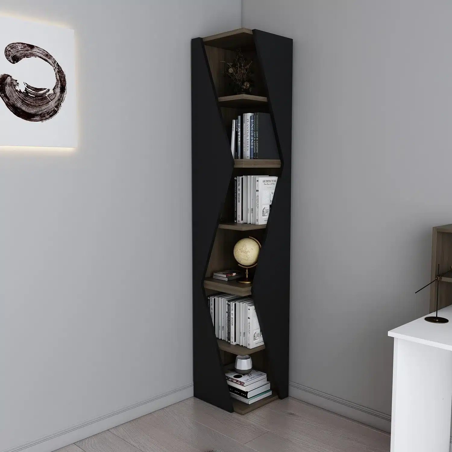 ספרייה דגם ARROW – עיצוב אלכסוני מודרני עם 6 מדפים לאחסון מצוין