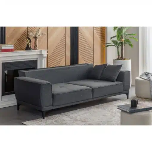 ספה נפתחת בבד אריג אפור איכותי עמיד וקל לניקוי . הספה עשויה מחומרים משובחים: ספוג איכותי בצפיפות גבוה , מסגרת הספה עשויה מעץ מלא ו- MDF וקפיצים חזקים ועמידים לנוחות מרבית . מנגנון הספה נוח וקל לשימוש. יחד עם הספה מגיעות שני כריות נוי להשלמת העיצוב ולנוחות.