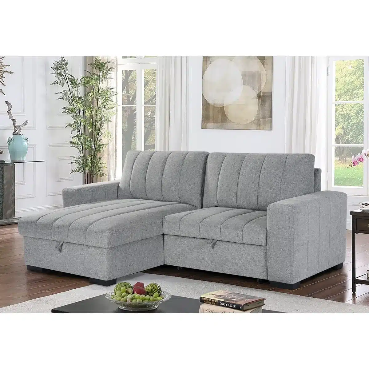 סלון פינתי נפתח למיטה זוגית עם ארגז מצעים – פתרון שלם לבית המודרני