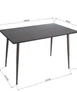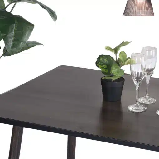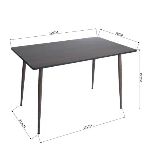 פינת אוכל קטנה עם 4 כסאות בעיצוב קלאסי. הכסאות מרופדים בדמוי עור חום כאמל איכותי עמיד וקל לניקוי. השולחן עשוי מ-MDF עם חיפוי מלמין יצוק בגוון עץ אגוז כהה , רגלי השולחן עשויות ממתכת אל חלד בגימור בגוון עץ.