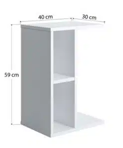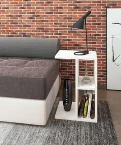 שולחן צד קטן לסלון עם שני מדפי אחסון עשוי מאם די אף עם חיפוי מלמין בצבע לבן.