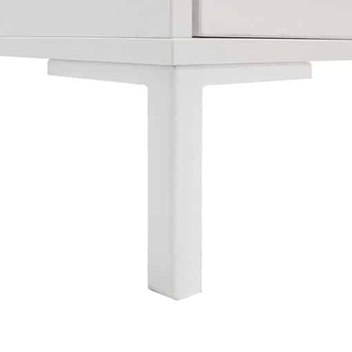 שולחן סלון אלגנטי ופונקציונלי בעיצוב מודרני המשלב שתי מגירות אחסון ותא פתוח נוסף. הגימור הלבן הנייטרלי מתאים למגוון סגנונות עיצוב ומאפשר השתלבות מושלמת בכל חלל מגורים.