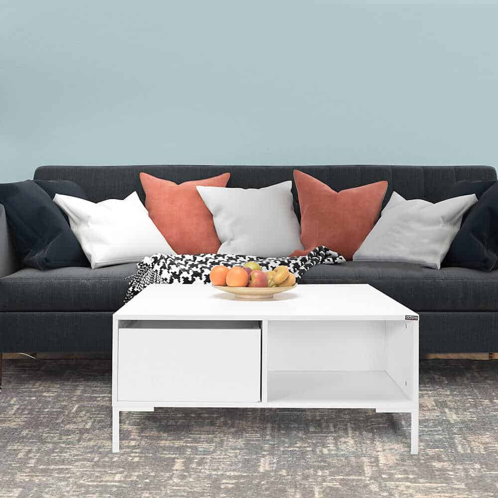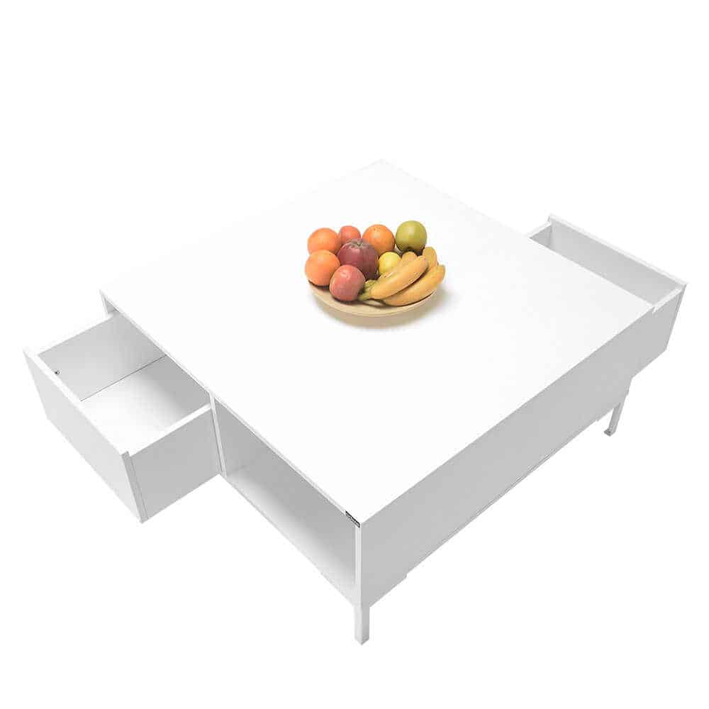 שולחן סלון ריבועי עם מגירות אחסון – עיצוב מינימליסטי בגימור לבן