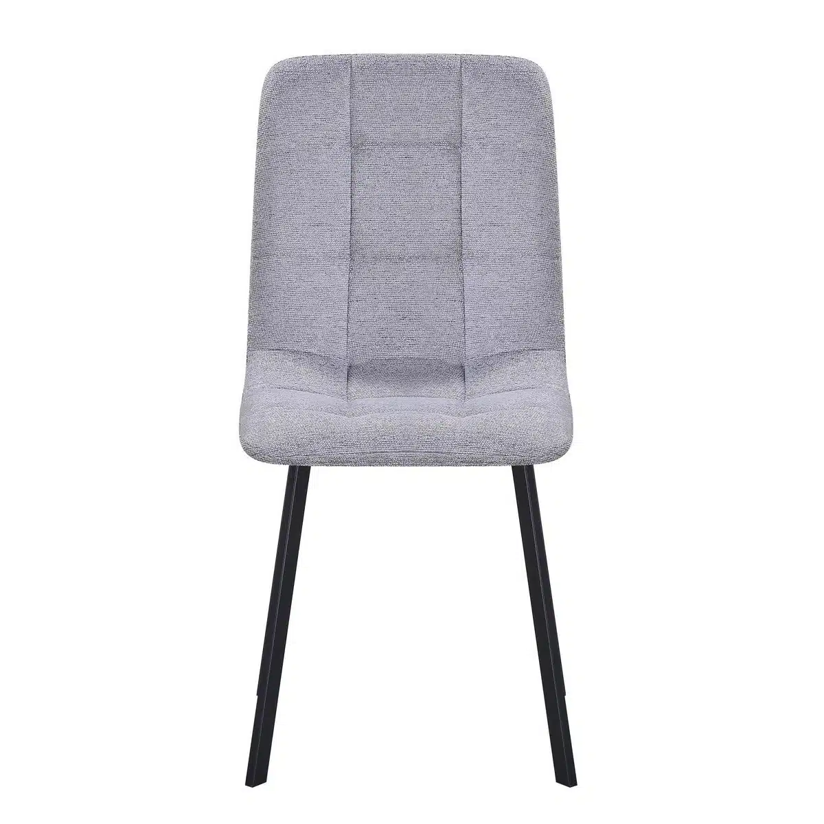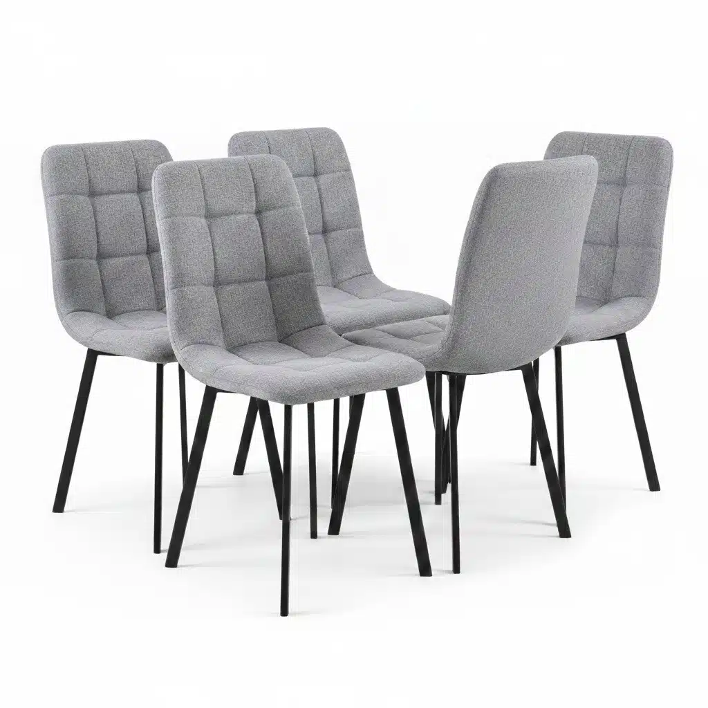 סט 4 כסאות אוכל מרופדים בעיצוב אלגנטי עם ריפוד קטיפה איכותי ודוגמת מעוינים יוקרתית. רגלי מתכת חזקות בגימור שחור מט מבטיחות יציבות ועמידות לאורך זמן.