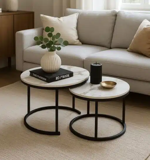 סט זוג שולחנות קפה יוקרתיים בגימור שיש – עיצוב על-זמני לסלון