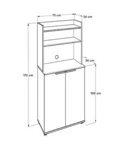 ארון זה, מעוצב בסגנון מודרני ונקי, מציע שפע של מקום אחסון סגור ופתוח. עם שתי דלתות, ארבעה מדפים סגורים ושני מדפים עליונים פתוחים, הוא מספק לכם את כל המקום הדרוש לארגון מגבות, מוצרי טיפוח, תרופות, או כל פריט אחר שתרצו לשמור מסודר.