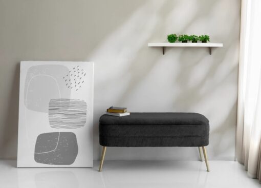 ספסל אחסון בבד שחור עם תא אחסון