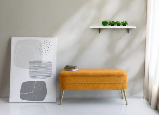 ספסל הדום מרופד בצבע חרדלי עם מושב מרופד הוא פריט פונקציונאלי ועיצובי שיכול לשדרג כל מרחב. הספסל.