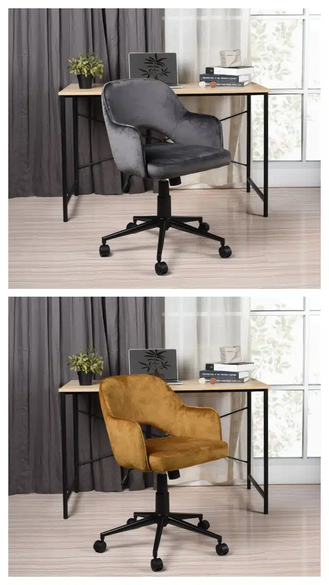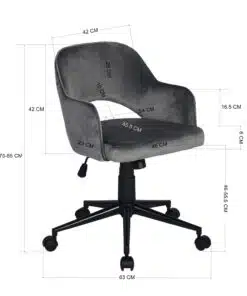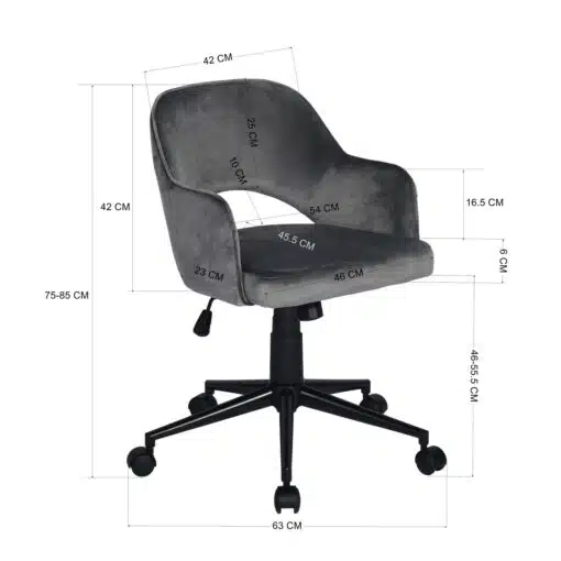 כיסא מחשב מעוצב בבד קטיפה אפור איכותי נעים למגע וקל לניקוי, הכיסא מרופד היטב בספוג איכותי בדרגות קושי שונות המבטיח עמידות מרבית לצד נוחות ללא פשרות גם בישיבה ממושכת. המנגנון מאובזר בבוכנה פנאומטית איכותית וחזקה להתאמת גובה המושב.