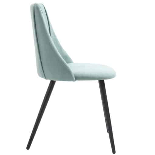 כסאות לפינת אוכל מרופדים היטב בבד ירוק טורקיז בהיר , הכסאות מרופדים היטב ונוחים מאוד לישיבה, רגלי הכסאות עשויות מתכת אל חלד חזקה ויציבה בצבע שחור.