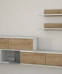 הכירו את מזנון הטלוויזיה המודרני שלנו, המשלב עיצוב נקי ומרשים עם פונקציונליות רבה. המזנון מגיע בגימור מושלם, ומגיע עם תאי אחסון מרווחים ושני מדפים תואמים לתלייה.